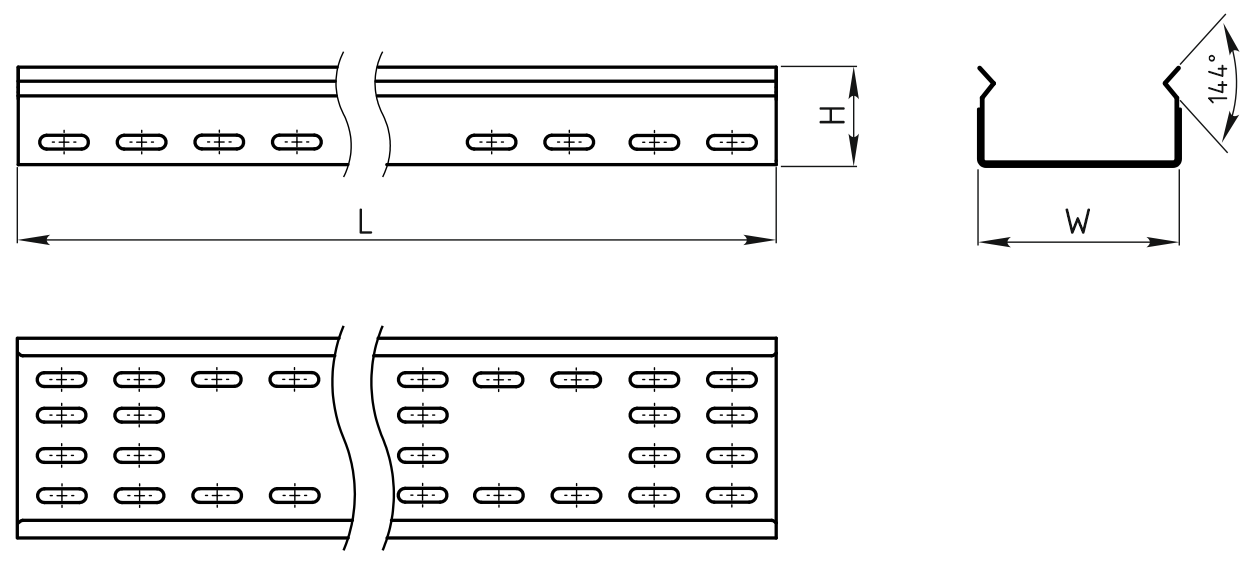 Ширина W = 50 / 100 / 150 / 200 / 300 / 400 / 500 / 600 мм.