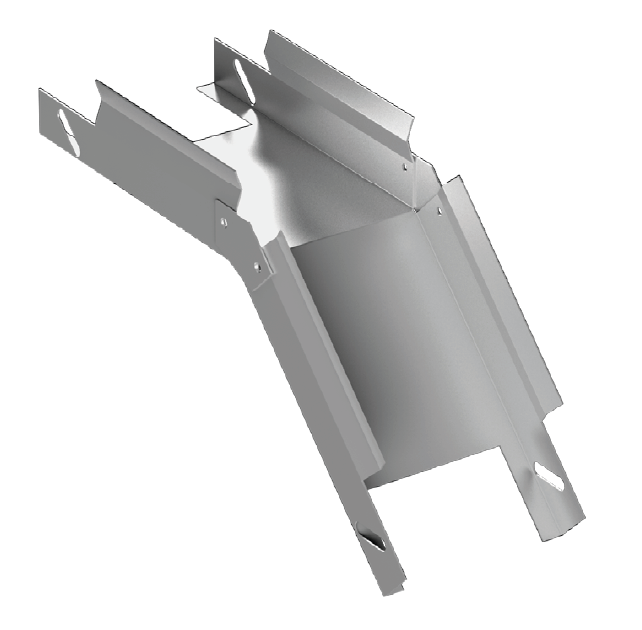 Лоток угловой вертикальный поворот вниз на 45° предназначен для поворота трассы в горизонтальной плоскости под углом 45° (095°). Используется как аксессуар к прямым лоткам серии ЛЛ перфорированным, неперфорированным, облегченным, стандартным, усиленным.
