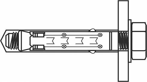 Используется для крепления тяжеловесных конструкций к бетону, природному камню или полнотелому кирпичу.
