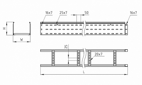 Лоток лестничный прямой 300х150x2000 используется для построения прямых участков трасс для прокладки проводов и кабелей.