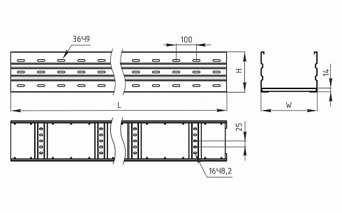 Лоток лестничный усиленный прямой серии LHT-B 300х200x6000 используется для построения прямых участков трасс для прокладки проводов и кабелей.