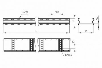 Лоток лестничный усиленный прямой серии LHT-B с неперфорированным дном 600х80x3000 используется для построения прямых участков трасс для прокладки проводов и кабелей.