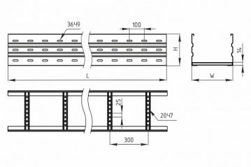 Лоток лестничный усиленный прямой серии LHT 900х200x6000 используется для построения прямых участков трасс для прокладки проводов и кабелей.