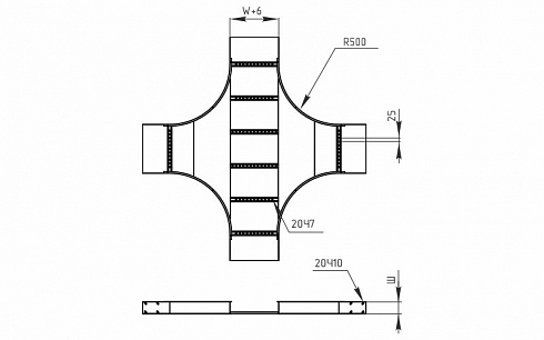 Ответвитель крестообразный LHTC-B с дном используется для организации боковых отводов трассы влево и вправо под углом 90° (перекресток).