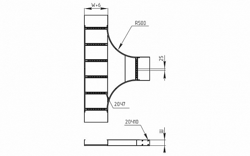 Радиус поворота = 500 мм.