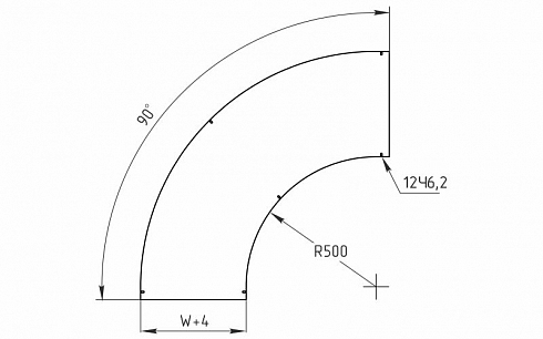 Радиус поворота = 500 мм.