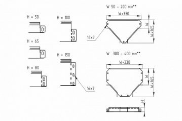 Ширина W = 50 / 100 / 150 / 200 / 300 / 400 / 500 / 600 мм.