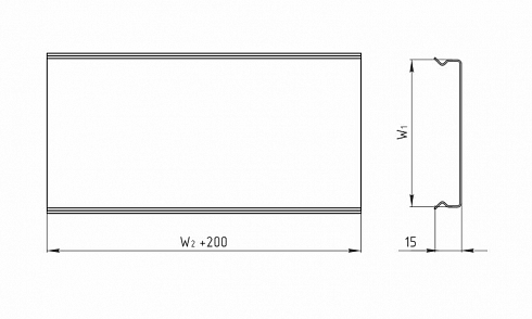 Ширина W1 = W2 = 50 / 100 / 150 / 200 / 300 / 400 / 500 / 600 мм.