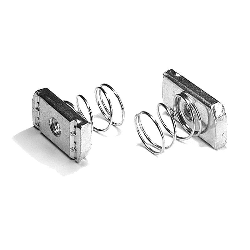 Гайка STRUT с пружиной необходима для крепления консолей к С-образному профилю, подвесам и траверсам на основе С-образного профиля.