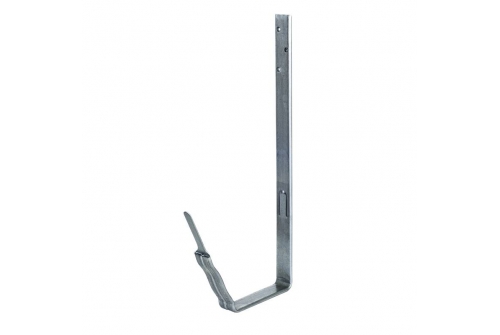 Облегчает монтаж водосточной системы за счет расположения фиксатора с внешней стороны крюка, что позволяет устанавливать желоб и после монтажа кровельного материала.